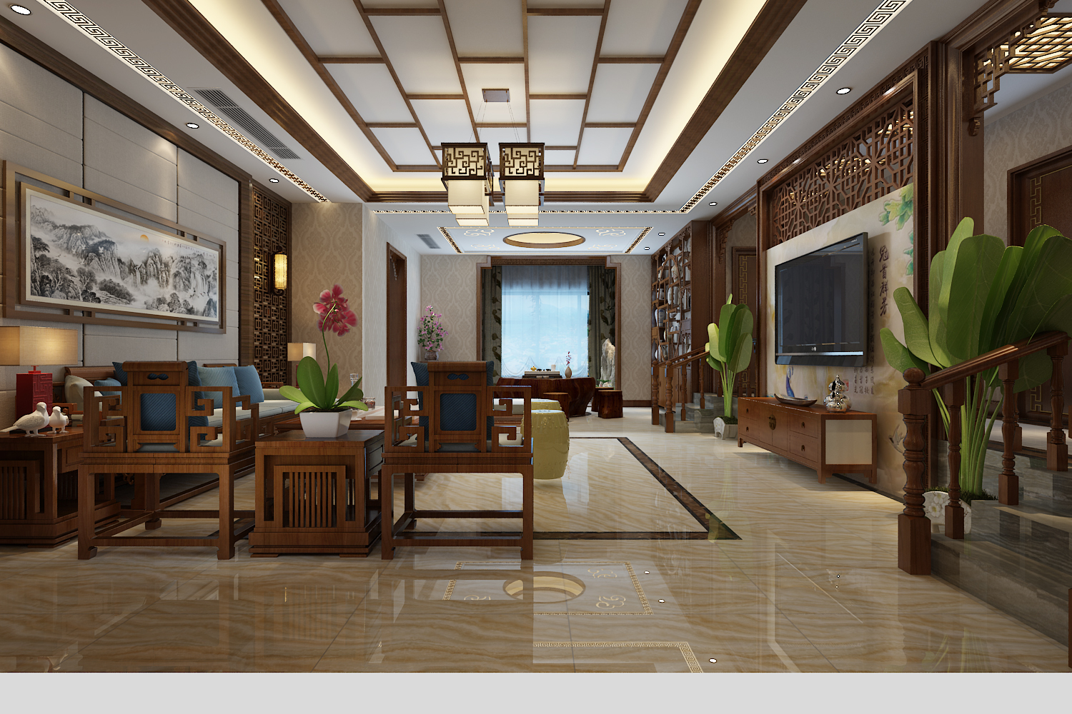 中式風(fēng)格家居體現(xiàn)主人的較高審美情趣與社會地位。
